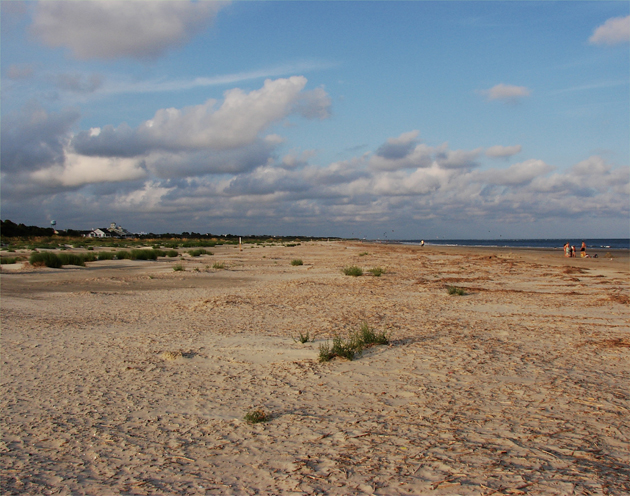This military-class light station is a drab reminder that this has long been the location of multiple military forts: Above. Looking north up the island is this sandy beach that is so reminiscent of North Carolina's Outer Banks minus the oversized sand dunes: Below. images by Stan Deatherage