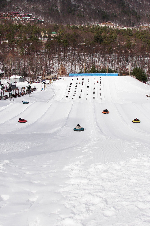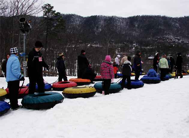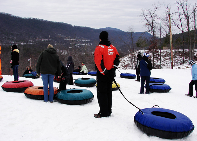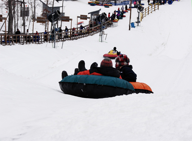 The road rules for snow tubers are: First you wait and then you ride: Above and below.