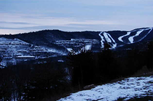 The north side of the Massanutten peak in the early morning will soon play host to skiers, snowboarders and tubers: Above and below: