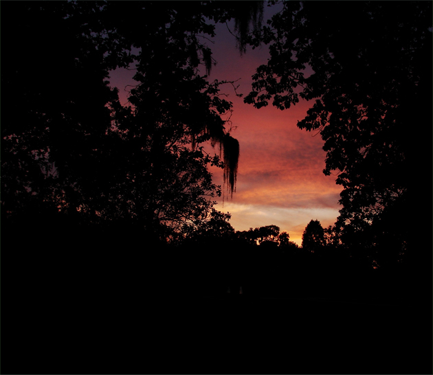 Water, Live Oaks, Spanish Moss, and the remains of a fiery sunset is my parting goodbye until I return again: Above and below. image by Stan Deatherage