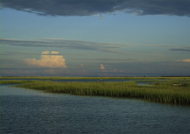 Peaceful solitude, alone with muffled roar of the waves offers Myrtle Beach one of its most most palpable lures: Above. If one can find peace of mind here, one can make their way about 10 miles south to Murrells Inlet for one of their remarkable sunsets: Below. photos by Stan Deatherage