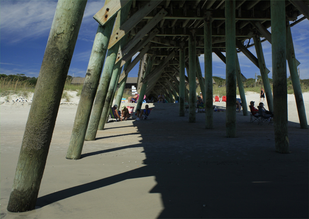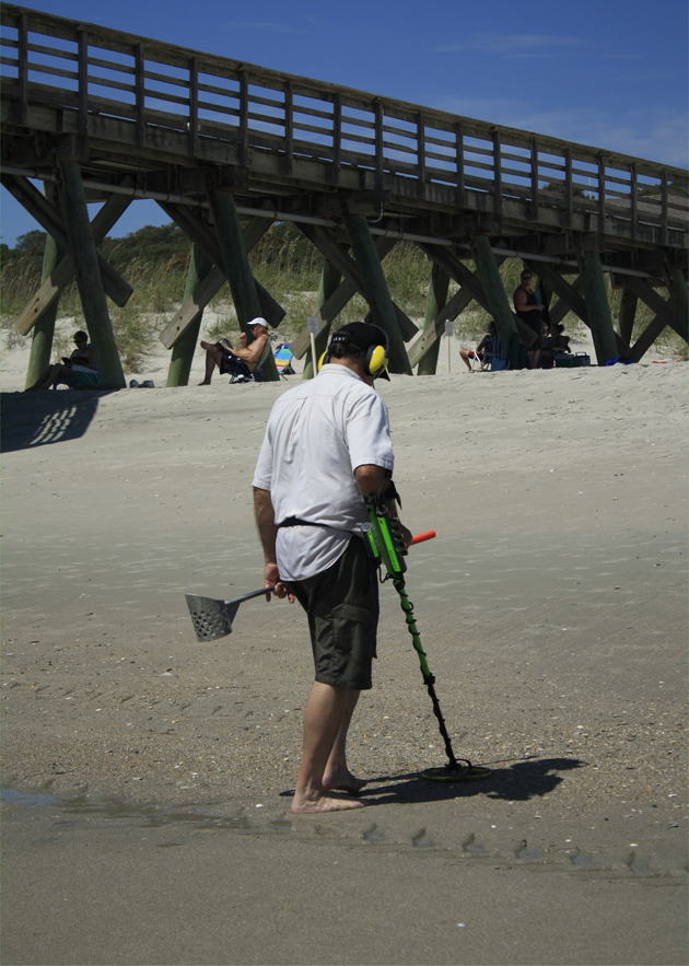 The Myrtle Beach State park Pier provides different things to many people. Besides just fishing, some folks use it for shade: Above. Some folks use it as a collecting point for the finding of lost valuables: Below. photos by Stan Deatherage
