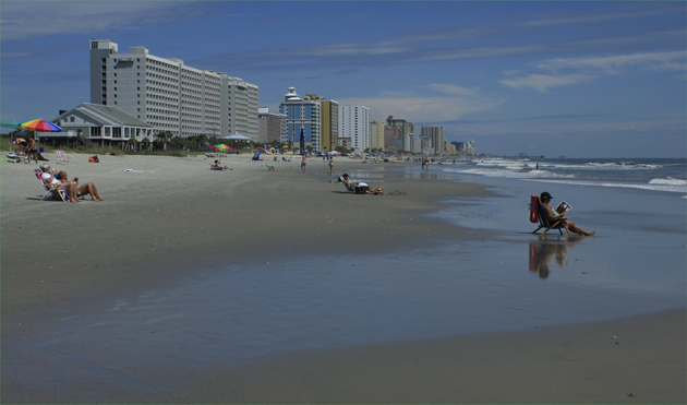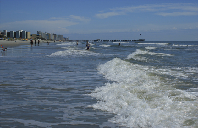 Another beautiful day at the beach, and once again, I head south to the shoreline in front of the Myrtle Beach State Park. The Springmaid resort stand here: Above. The surf, due to Hurricane Katia being far offshore, is whipping up a froth: Below. photos by Stan Deatherage