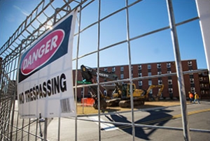 Work crews have begun taking apart Belk Residence Hall brick by brick to make way for two buildings that will become a new entrance to East Carolina University's main campus.