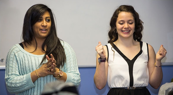 Junior nutrition major Hetal Patel, left, and Chapman present information on how to develop and maintain a healthy lifestyle.