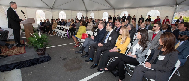 A crowd gathers to celebrate the opening of the ECU Dental Community Service Learning Center in Lillington.