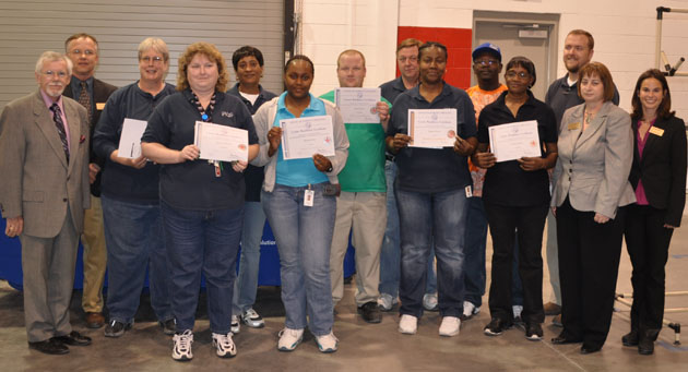 Pictured above are several employees of the PAS plant in Washington who recently completed CRC training, testing and certification offered through BCCC at their worksite. From left to right are: Dean of Continuing Education Chet Jarman, Small Business Center Director Lentz Stowe, Mary Weeks, MaryJo Edwards, JoAnn Haddock, Rosetta Peck, Raven Jones, Rick Cauwels, Regina Harris, Miguel Howard, CC Boomer, Chris Currin, CRC and Special Programs Coordinator Lou Stout and Customized Training Coordinator Lauren Spruill. Those who completed the same training, but are not pictured are: Thomas Devereese, Linda Garrett, Thomas Clark Parham, Willie Smith, Carolyn Cooper and Billy Weathers.| Southside students place at State Leadership Conference | Community, Beaufort County Community College, School News | Dr. Karen Thomas to deliver BCCC commencement address |