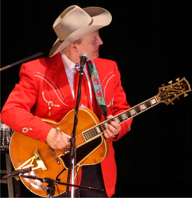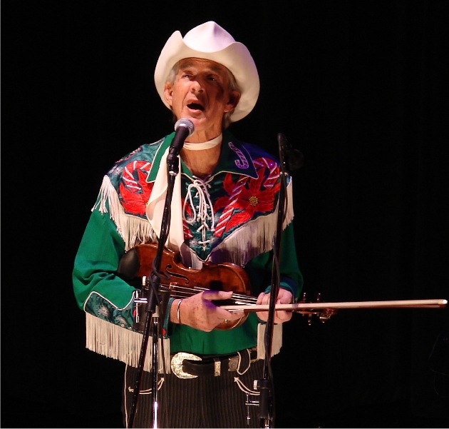 Ranger Doug explaining to Woody Paul and we, the audience, what it means to live life The Cowboy Way: Above. One of the last of the great singing cowboys - Woody Paul: Below. photos by Stan Deatherage