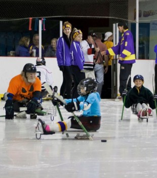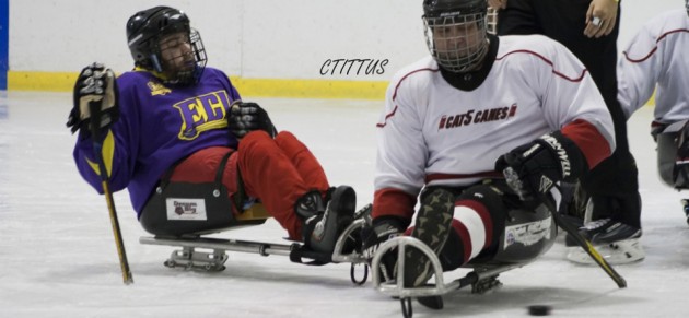 Sled hockey, a Paralympic sport, is physically demanding because movement on the sled is totally dependent on the upper body. Players propel themselves by use of spikes on the ends of two three-foot-long sticks.