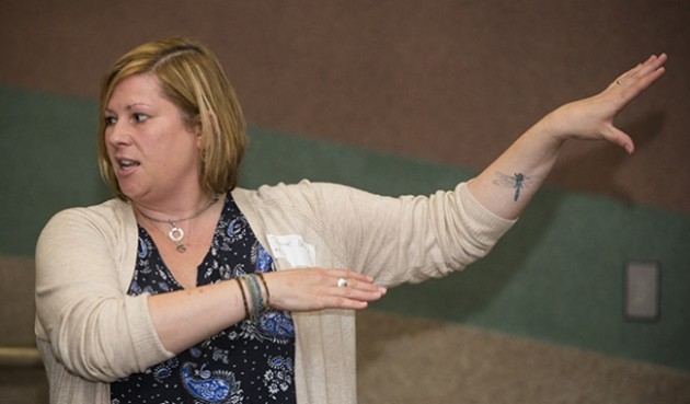 Jamie DeWitt, ECU assistant professor of pharmacology and toxicology, speaks during the Neuse River Guardians Environmental Symposium April 20 at River Park North.