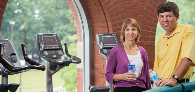 ECU alumnus and MATCH Program Director Tim Hardison, right, and Dr. Suzanne Lazorick, pediatrician and child obesity expert with ECU’s Pediatric Healthy Weight Research and Treatment Center, collaborated on an obesity intervention program targeting middle school children. (Photo by Cliff Hollis)