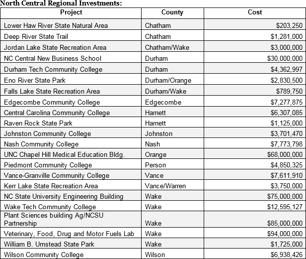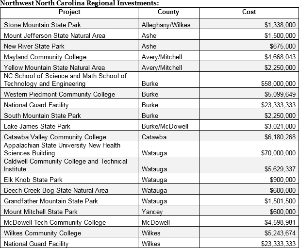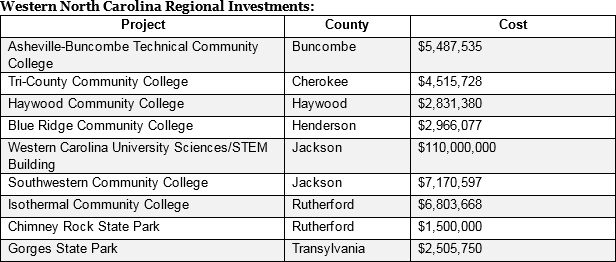 "New university and community college facilities and improved state parks are long-term investments that will support our growth and make North Carolina more attractive to businesses and residents."