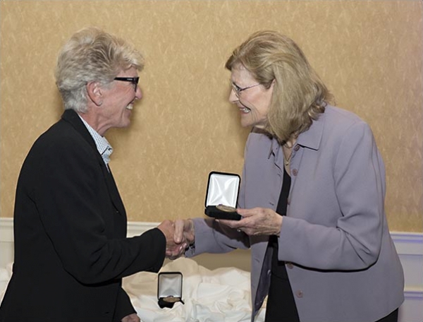 Vice Chancellor Phyllis Horns presents an award to nursing professor Dr. Maura McAuliffe.