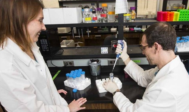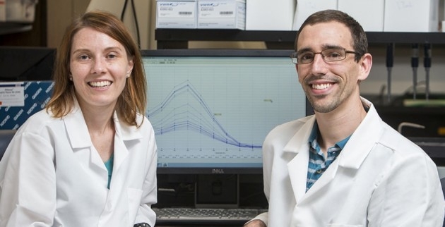 Research by ECU professor Dr. Carol Witczak, left, with Ph.D. candidate Jeremy Ferey examines the effect of exercise on diabetes. (Photos by Cliff Hollis)