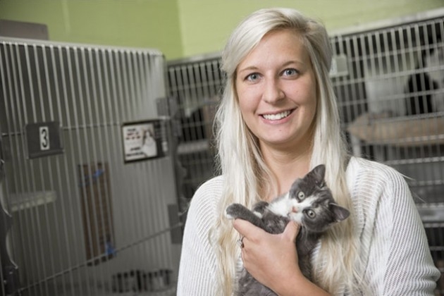 ECU student and Public Service Fellow Allison Leigh Jackson volunteers at the Pitt County Animal Shelter.