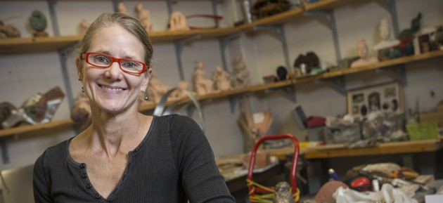 Chris Morgan, an ECU art graduate student, is shown in her studio space in the Jenkins Fine Arts Center. Morgan is involved in effort to make simple hand-sewn shoes for the children to improve their physical and economic condition by creating a cottage industry in the area.