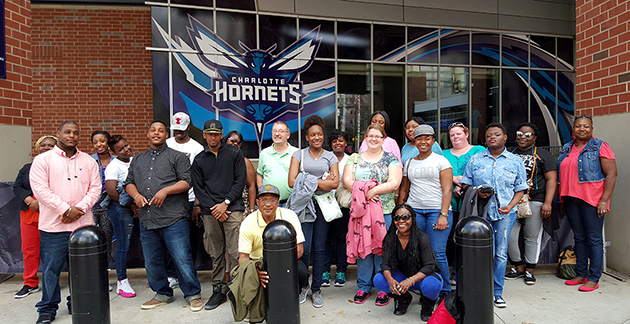 TRIO students outside of the Time Warner Cable Arena in Charlotte