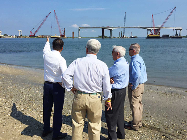 Morehead City, N.C.     Governor Pat McCrory joined Brigadier General David Turner, commander of the U.S. Army Corps of Engineers, and state and local representatives today to survey progress of the new Gallants Channel Bridge project and tour the Port of Morehead City. The construction to replace the existing draw bridge on U.S. 70 over Gallants Channel is on track for completion this fall, nearly a year ahead of schedule.