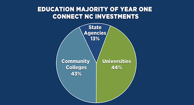 The Connect NC bond will invest $980 million into the state's 17 universities. The vast majority of these improvements will build facilities that will improve teaching and research in the science, technology, engineering and medical fields. An additional $350 million will go to the community colleges, primarily for new construction, repairs and renovations on its 58 campuses.