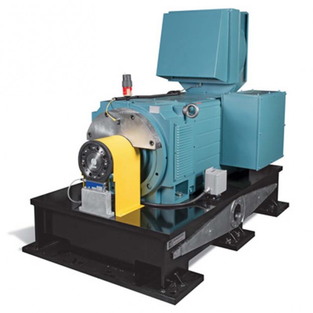 Here's a picture of a current test stand similar to the one that we sold to Lockheed. This was to test the props during the maintenance. The props are variable pitch props. The procedure was to mount the props and run them up to a set RPM; then adjusts the pitch of prop. You could tell the amount of torque different variance and RPM drop on the dynamometer. Adjustments could then be made on the test stand prior to installation on the plane. This is the motor portion only . The variable speed DC drives were housed in an F86 cabinet about four feet wide by six feet high with two drives per cabinet for redundancy.
