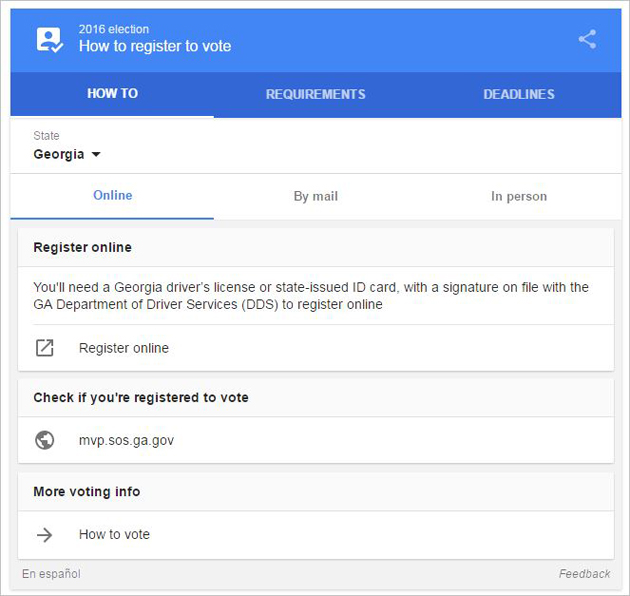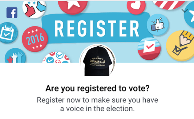 Both Google and Facebook have had pop up reminders on my first sign in asking me if I am registered to vote. These popped up on my page without me searching on clicking on anything.