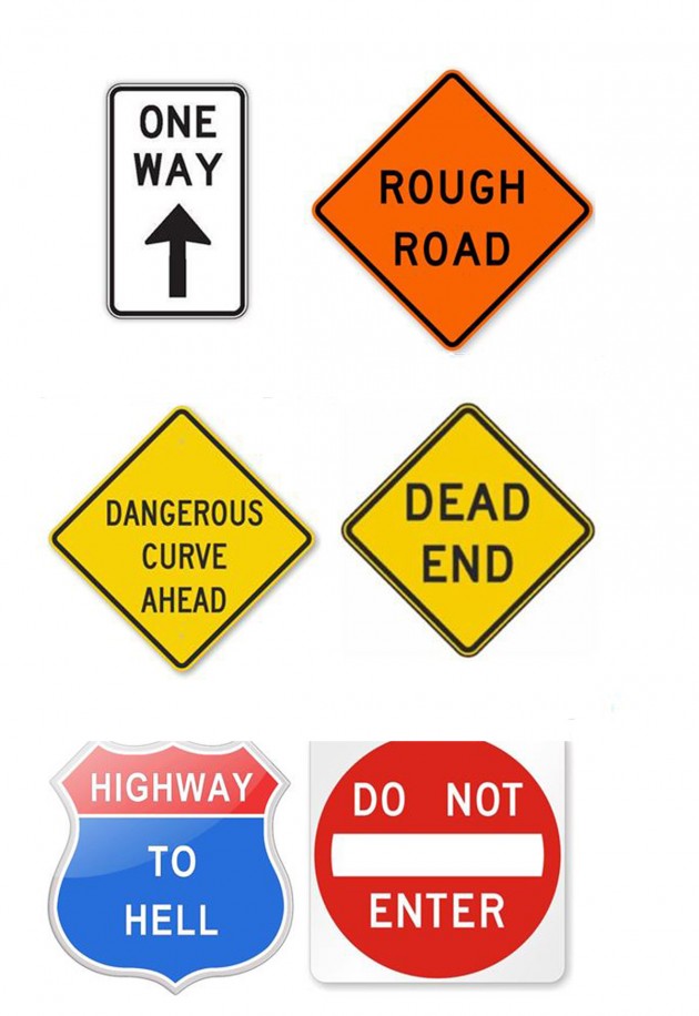 Just to prove that I do not always follow the poem above I offer this slightly humorous idea. What would happen if we used people and road signs with that convey the same message? Would that be a safety hazard or just cruel and unusual punishment?