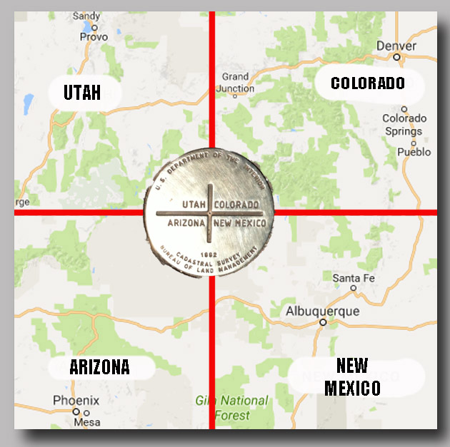 Out West, there is a point where you can get on your hands and knees and have one of each in four states. I have been on my hands and knees but not at this location. Anybody ever been there?