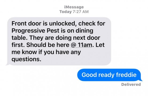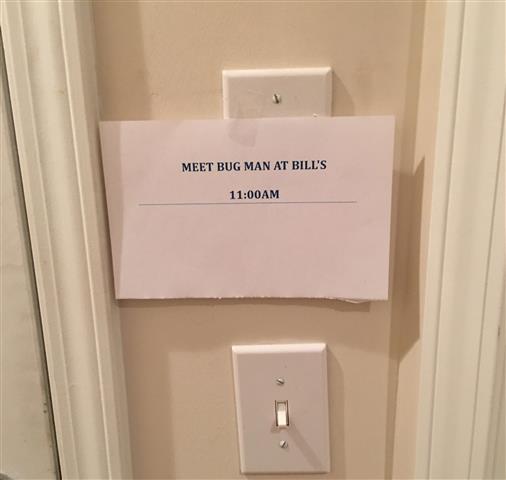 "BUG MAN" calls to postpone the visit.