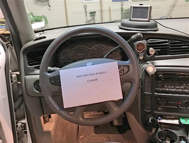 One of my old buddies who is still building toward his retirement asked if I would meet the Pest Treatment Company at his house this morning. I of course said yes. That was about two weeks ago. As usual, I had to make a few notes and reminders so I would not miss the appointment.