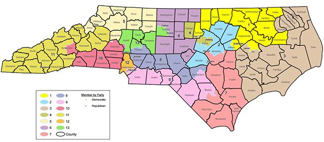 Another example of litigation sharpening the process came in early 2016, when a panel of federal judges ruled the legislature relied too heavily on race when it drew the 1st and 12th districts in 2011. The court gave the state two weeks to draw new districts. The Republican-led legislature unveiled the new congressional map two days before the deadline, revealing a map that seemed to surprise everyone. While the political outcome seemed to remain the same (10 Republican and three Democratic districts), the districts appeared markedly more compact. Interesting to note, that map was redrawn even though the previous districts were approved by the U.S. Justice Department and the North Carolina Supreme Court and used in the 2012 and 2014 elections.