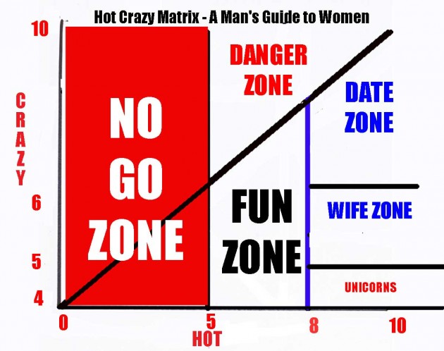 I realize that some of you may not have watched the video, but at the end, there is a reference to the Men Matrix chart. As misogynist as it seems, it does not require much math. The women have a very simple chart which really only has one axis, but for clarity there is a Y axis which has been defined as the CUTE range. The X-axis supersedes any other criteria.