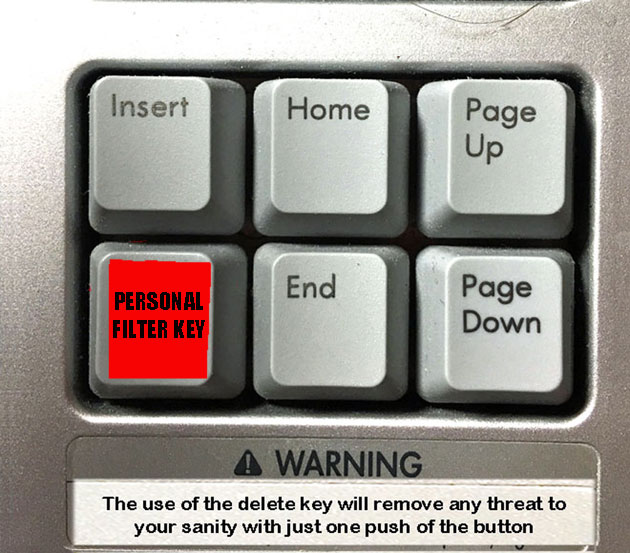 'Personal Filter Key' , which is my conduit to the digital world. It works almost every time. There are a few occasions where I have to repeat the procedure because some of my email contacts will take advantage of the modern age equivalent of GOSSIP and FORWARD the message back to me and everyone else that received the original. I don't take any of this as a personal insult or reason to start a feud. I understand that this is perhaps the modern day equivalent of a front porch meeting with neighbors and friends.