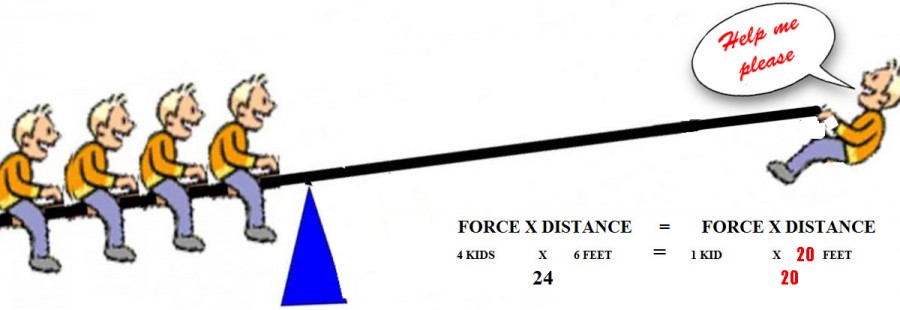 The problem with this scenario is that the government does not create wealth; it consumes wealth. Before the government can give anyone anything it must first take something from someone who earned it. Imagine the See-Saw with two kids on one side (dependent on government payments) and one kid on the other side (self-reliant in a free economy). The two kids can hold up the other kid for as long as they want. This weight imbalance is now encroaching past the 50 / 50 point, if it has not already tipped the balance of workers to takers. The fulcrum of a balance beam of economic equilibrium must moved to keep the See-Saw in balance.