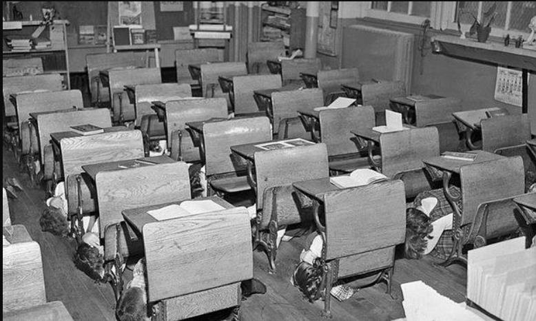 For the record, I also was taught in grammar school to get under the desk in the event of a nuclear attack alarm indicating an attack from the Ruskies. We even had two separate alarms: One for fire and one for nuclear attack. We actually rehearsed what to do in both cases.
