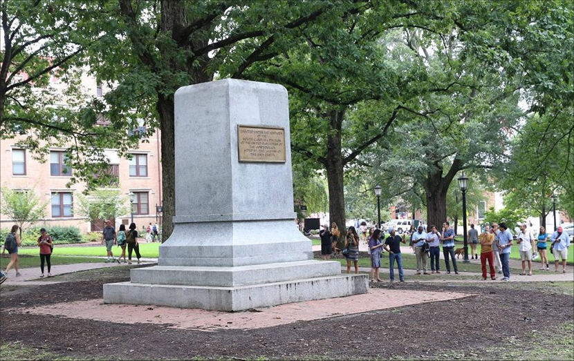 'Silent Sam' no longer stands on his pedestal at the UNC-Chapel Hill campus in this photo taken Aug. 21, 2018. (CJ photo by Don Carrington)