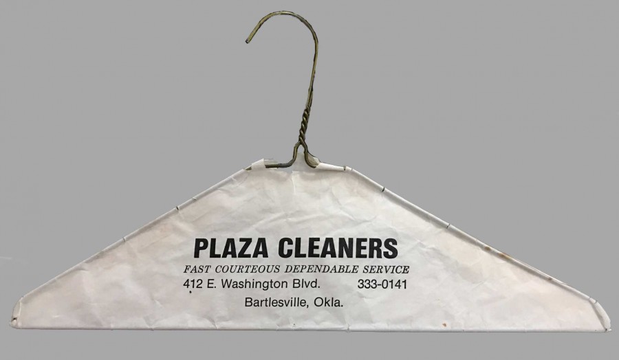 I did note that there were also a few shirts there not in their plastic covers. One was a dress shirt that I guess was part of a multi-pack from the cleaners. Normally, when I remove a shirt from a multi-pack, I am careful not to destroy the plastic cover. I just remove the shirt by fishing it down through the hole so the rest of the shirts can stay clean in the closet. Imagine my surprise when I saw that one dress shirt was on a hanger from an Oklahoma cleaners. I note that I have not been to Oklahoma since the late 1990's.