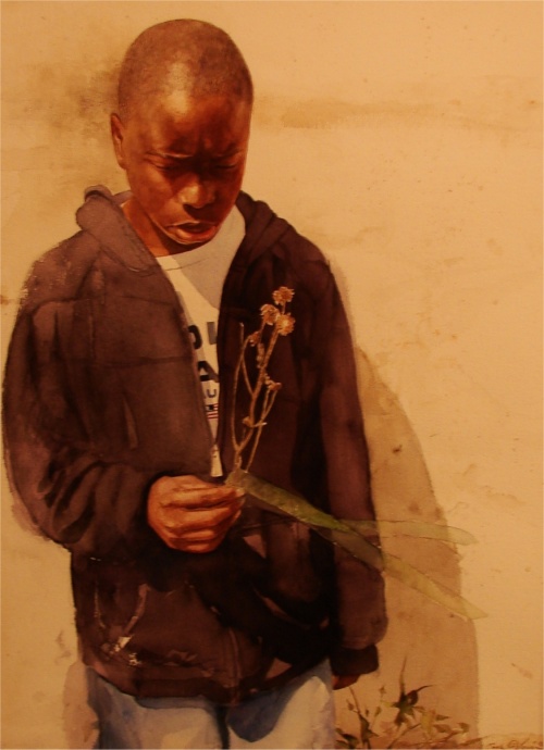 layers of thicker washes, scalable in tone, to give his paintings the necessary dept so they might convey some sense of perspective, and finishes them off with paint of a much thicker consistency, probably resembling a mucous of as a less dry “dry brush,” which projects the perspective of reality, and breathes life into his rendered world.