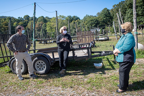 (From the right) Tutor Marcom; Taylor; and Dr. Jim Hamilton, Watauga County extension director for the NC Cooperative Extension, discuss the impact COVID-19 has had on the agricultural industry.