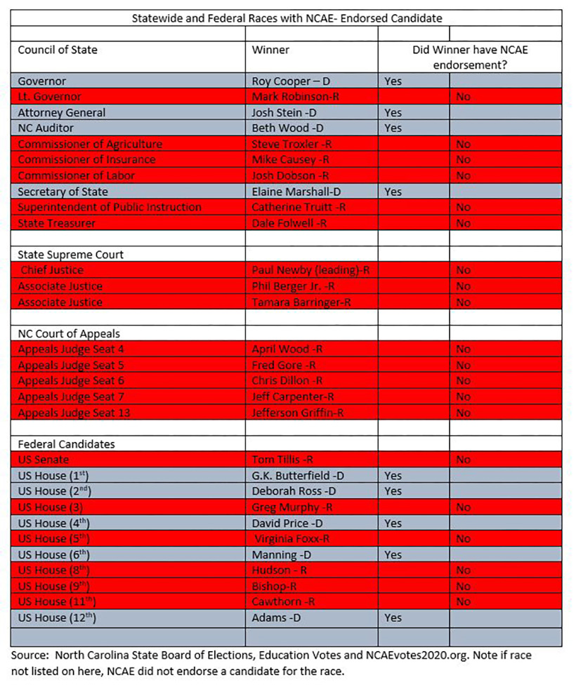 So how did NCAE-endorsed candidates perform in North Carolina?