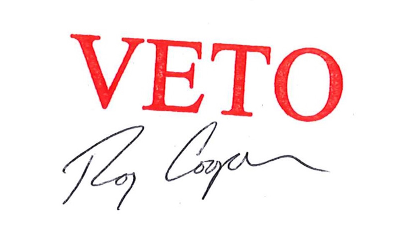 Cooper offered a message along with his veto.