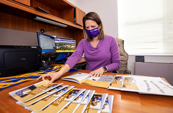 Peterson, the faculty advisor for ECU’s chapter of Beta Gamma Sigma, looks over brochure information in her office.