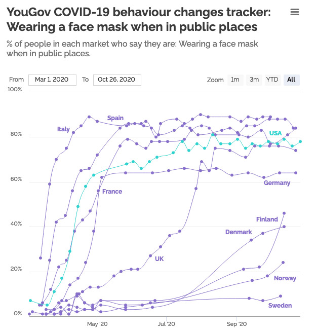 How about the United States? Americans have proven to be highly compliant with mask wearing, even higher than the Germans.