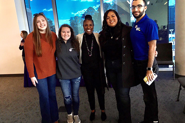 Left to right, Cheyenne Kober, Kayla Brown, Vice Chancellor of Student Affairs Dr. Virginia Hardy, Jocelyne Alfaro-Ruiz and Mohammad Sarsour attended the National First-Generation Celebration in 2019. | Photo: Contributed