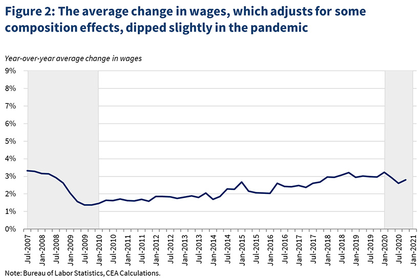 wage data from the Federal Reserve Bank of Atlanta also do not show an increase in wage growth during the pandemic.