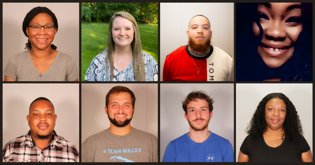 (Top, left to right) Shana Barnes, Miranda Barneycastle, Ricky Beacham-Dunlop, and Shanicqua Daniels. (Bottom, left to right) Quentin Hatten, Nicholas Jones, Nicholas Jordan, and Shamika Roscoe.