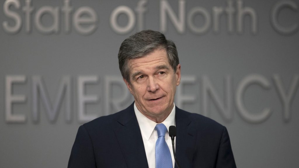 Gov. Roy Cooper, at an April 23, 2020, COVID-19 news conference. (Pool photo)