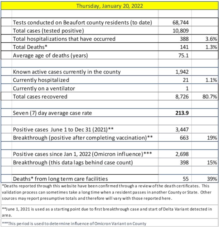 Beaufort County statistics are updated daily Monday - Friday and can be viewed using the following link.