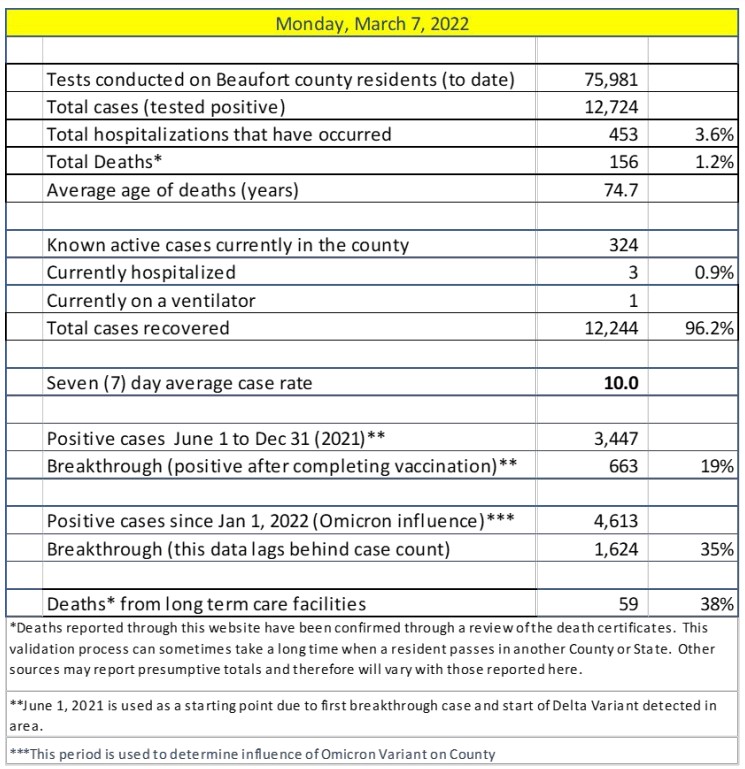 20 new cases have been reported in Beaufort County since Friday (3/4).