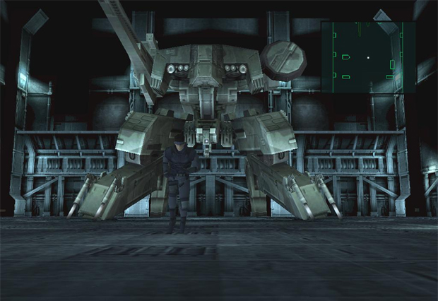 Metal Gear Solid really knows how to tell a story. Solid Snake, super-sneaky agent, must infiltrate a base that has been overrun by terrorists. These terrorists, however, are members of your old unit, "a top secret organization known as Fox Hound". The "hounds" are sitting on a super-secret new weapon and not to mention, enough nuclear warheads to blow everyone away. Your mission is to infiltrate the base "carrying nothing but a pair of binoculars and a pack of smokes"; check up on a couple of hostages; find out if Fox Hound even has the ability to carry out its apocalyptic threats, and stop it. The storyline unfolds in a seemingly never-ending collection of cut scenes, which are extremely well rendered using the game engine. The game doesn't need full motion video (FMV) to clog up the process. Although, it does use video in a few isolated cases and uses it reasonably well. When you first start playing the game, you feel like you truly are constantly in danger. There are so many ways that guards can be alerted to your presence. The most dangerous, of course, is sight. Enter the line of sight of a guard (or a camera) and you've got a fight on your hands. Luckily, their lines of sight are represented by big cones on your radar. Simply stay away from the cones and you'll never get spotted. If you either stomp through a puddle, cross a metal catwalk, fire off a weapon, or knock on a wall then nearby guards will hear the noise and say, "Huh, what was that noise?" They'll even follow footprints in the snow. If you're spotted, a swarm of guards come charging out of nowhere and begin to bring "pin the tail on the donkey" to a whole new and deadly level with Snake as the target. This encounter also starts a two-part timer. The first part of the timer is the danger timer. During this time, guards are