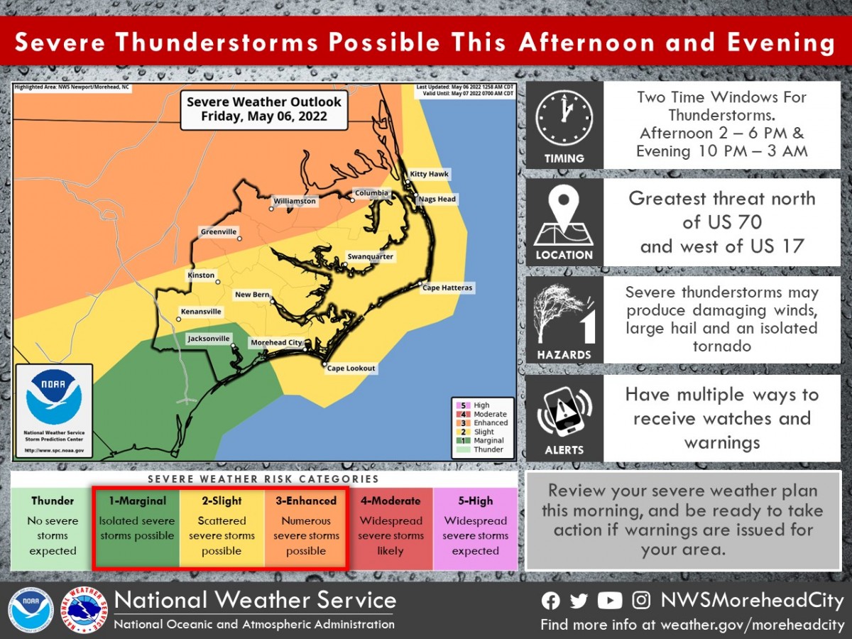 Our office is monitoring the likelihood of severe weather across Eastern NC for tomorrow. Forecast details for Beaufort County include: